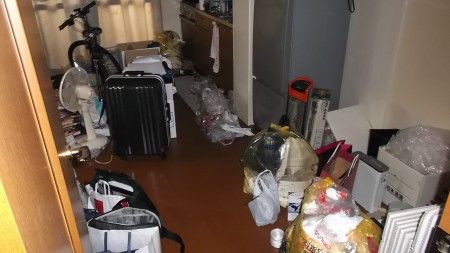 次のお引越し先がかなり遠方になる&不用なものを捨てるタイミングを逃していたということで、お部屋の状態はかなり散らかっている状態でした。